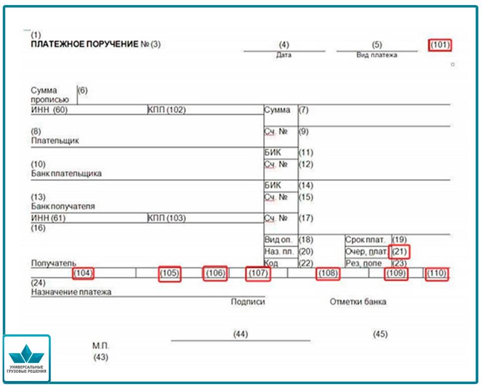 Основные элементы назначения платежа